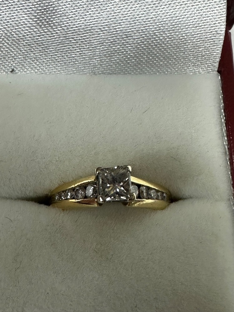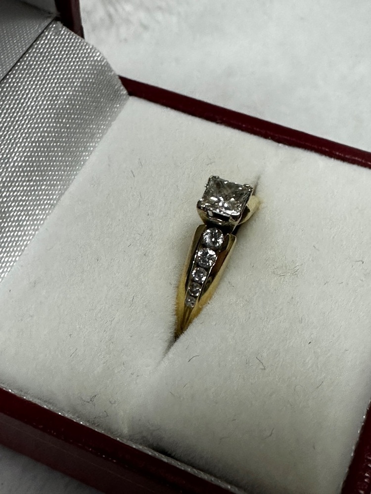 Illuminate your eternal love with this stunning 14kt yellow gold engagement ring. Its exquisite craftsmanship radiates sophistication, making it the perfect emblem of your enduring affection. A symbol of commitment that transcends time, this ring is the epitome of elegance and charm.
