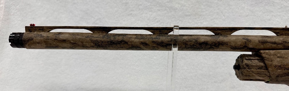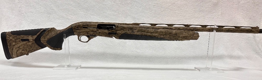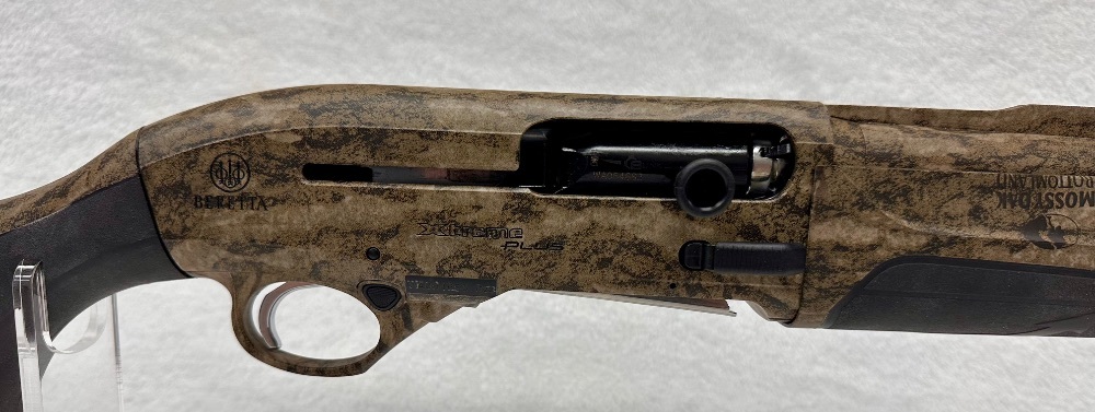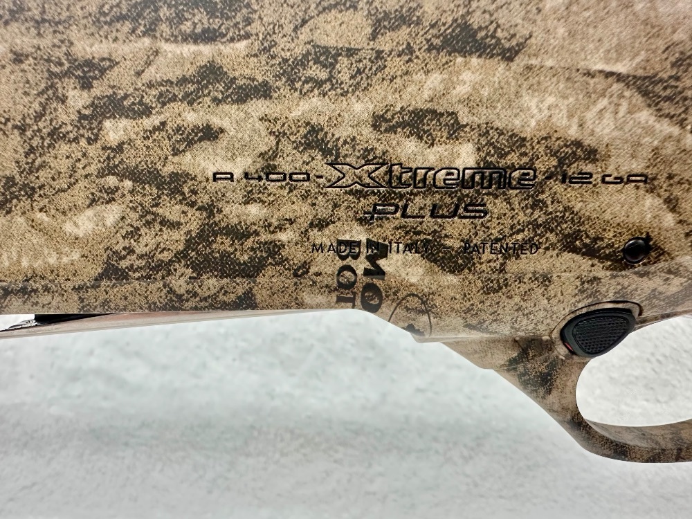 The Beretta Arms Corp. A400 Xtreme Plus is a 12-gauge semi-automatic shotgun with a total length of 49 inches and a barrel length of 27 inches. Notable for its two-tone finish, it delivers powerful performance for hunting and sport shooting.